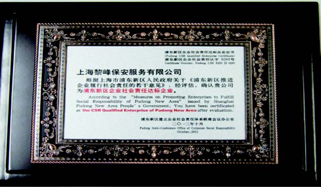 2015年 獲得上海市保安服務行業協會評定的保安服務壹級資質